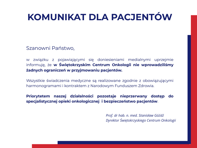 KOMUNIKAT DLA PACJENTÓW