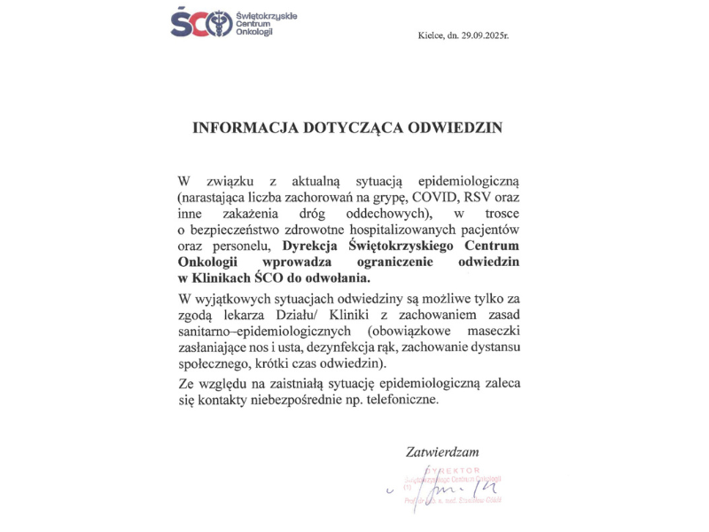 INFORMACJA DOTYCZĄCA ODWIEDZIN