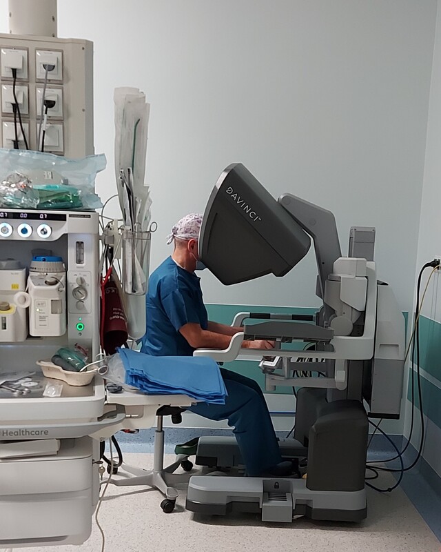 - Czuję się bardzo wyróżniony, bo mimo, że operujemy robotycznie dopiero od półtora roku, w listopadzie 2025 r. podpisałem umowę z firmą Synektik na proktoring, czyli uczenie i wprowadzanie nowych zespołów robotycznych w chirurgii głowy i szyi. Tym samym Klinika Otolaryngologii, Chirurgii Głowy i Szyi jest pierwszym w Polsce ośrodkiem uczącym chirurgii robotycznej w obszarze głowy i szyi. Do tej pory wszyscy musieliśmy jeździć za granicę, bo nie było polskiego ośrodka z uprawnieniami do uczenia innych – mówi dr Okła.