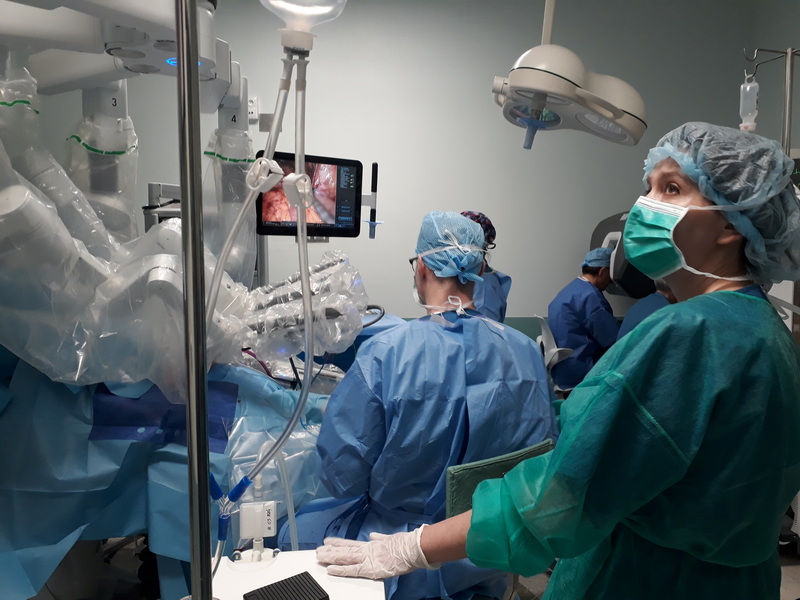 Specjaliści z Kliniki Ginekologii Świętokrzyskiego Centrum Onkologii wykonali 13 marca 2024 r. pierwszą w regionie robotyczną histerektomię z limfadenektomią (usunięcie macicy wraz z węzłami chłonnymi) u pacjentki z rakiem trzonu macicy. Podczas zabiegu zastosowano system fluorescencyjnego obrazowania węzłów wartowniczych. Ginekolodzy, obok urologów i torakochirurgów, są trzecią grupą specjalistów operujących w ŚCO w asyście robota da Vinci.